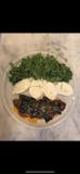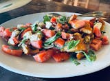 Mozzarella cheese, ricotta cheese, garlic, red pepper flakes and basil. Drizzled with extra virgin olive oil.